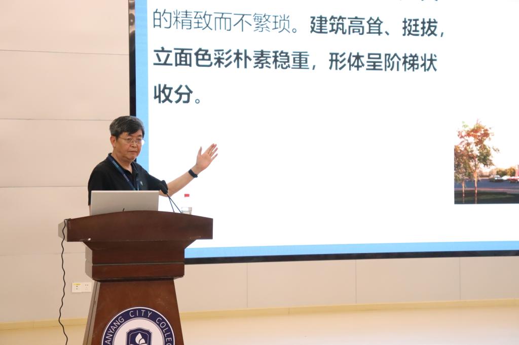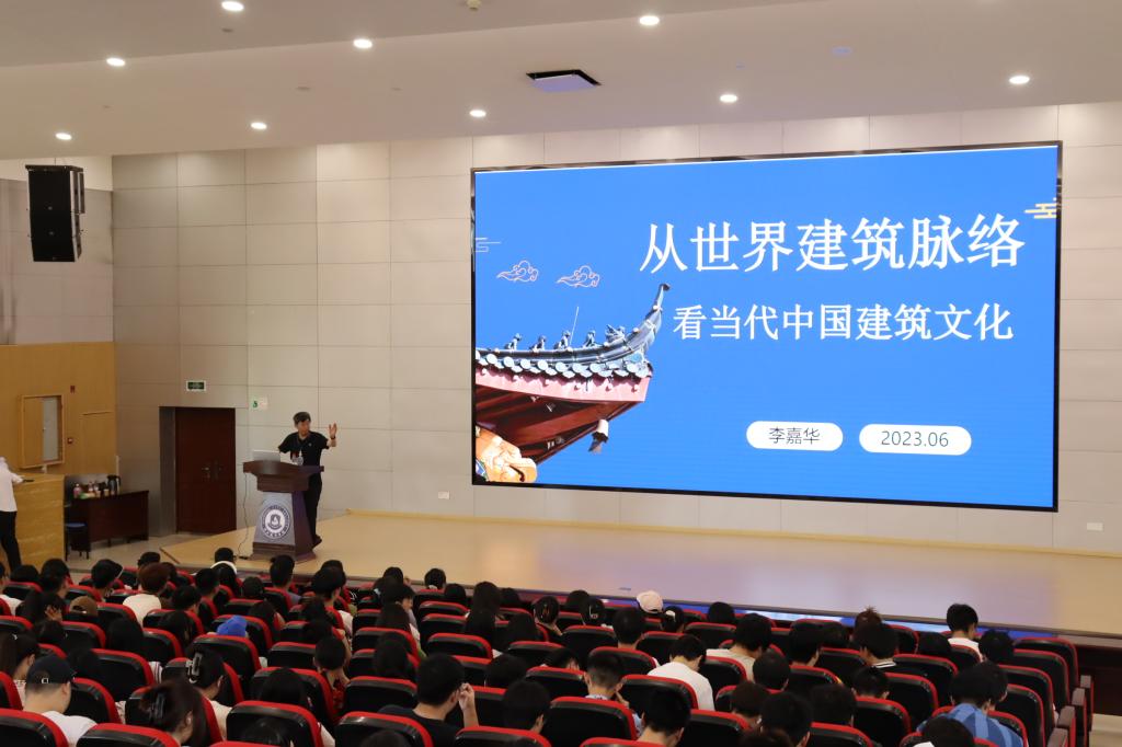 李嘉华教授从什么是建筑,建筑分类,到中国建筑风格与西方国家建筑风格的区别,再到中国建筑风格的独特色彩,将中国建筑文化发展史如同画卷一般展现在师生眼前。同时,说明建筑风格在后现代主义和新现代主义的影响下的发展,引出文脉主义建筑观,表达“任何建筑都不可能独立于所在地域的历史文化、自然环境、民俗习惯等原生物而存在,不管这些是否看得见,人都会主动地进行‘完形’”的观点。