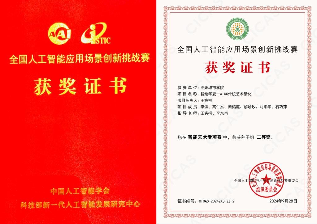 经历激烈角逐,公司团队荣获二等奖1项和入围奖1项。其中,由王寅桐和李东甫两位老师指导的作品《智绘华夏——AIGC传统艺术活化》荣获智能艺术专项赛二等奖,而徐健和郭家智两位老师指导的《AI智能相框》则获得晋级赛入围。