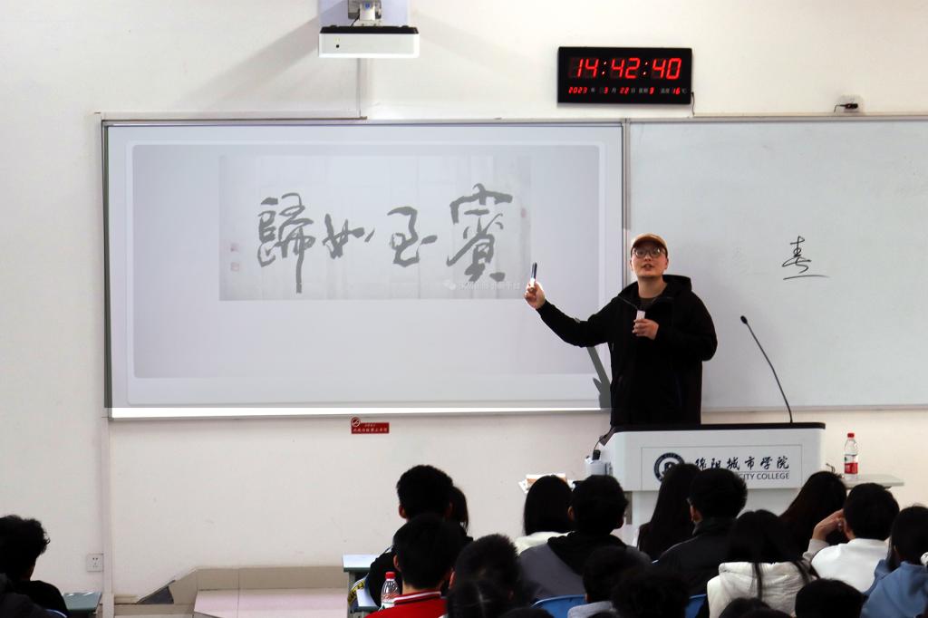 近日,k1体育现代城建公司邀请四川文艺评论研究中心研究员高树浩老师为同学们开展了题为“书法在江湖——浅谈书法在生活中的常见印象”的专场讲座。这是该校在深入开展四川省高校“三全育人”综合改革试点任务中,依托科技教育文化活动推进美育教育的具体实践。