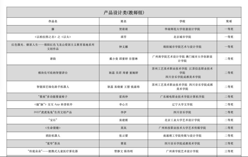 近日,“第九届中国高等院校设计作品大赛”评选揭晓。公司艺术系钟义娜老师的作品《红色微光,燎原人生——绵阳红色飞龙山爱国主义教育基地系列文创产品》荣获产品设计类教师组一等奖。