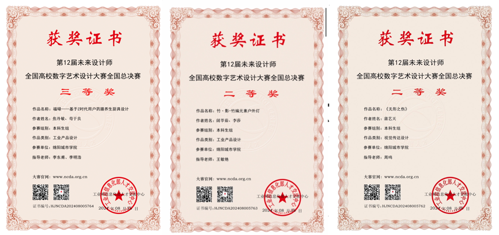 在此次大赛中,公司师生团队表现卓越,成绩斐然。来自产品设计、艺术设计、新媒体艺术及数字媒体专业的同学们在四川省省级决赛中,凭借出色的专业素养和创新能力,共斩获一等奖5项、二等奖5项、三等奖9项,累计近20项荣誉。在全国总决赛中,公司团队斩获荣获二等奖2项、三等奖1项,充分展现了公司在数字艺术设计领域的专业实力和优秀教学成果。