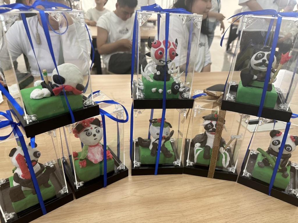 教学环节中,何云均先生以“千年面塑里的乡村记忆”为主题,向员工们系统地介绍了绵州面塑的历史源流、艺术特色以及当代传承所面临的挑战。他通过讲述清代“面人张”挑担走乡的故事,生动地展现了面塑技艺在乡村生活中的深厚根基。而后,何先生亲自示范传统技法,各色面团在其指尖翻飞,竹签轻点之间,栩栩如生的农耕场景便跃然眼前,令在场师生无不叹为观止。实操环节中,何先生从揉捏塑形到配色点睛,逐步为员工们进行演示,员工们在何先生的指导下,创作出了具有巴蜀特色的熊猫面塑作品,亲身感受到了指尖艺术的魅力。